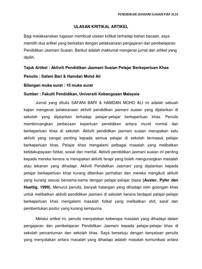 Contoh Ulasan Artikel 1 Ikut Subtopik Doc Tugasan 4 Ulasan Artikel Jurnal 1 0 Butiran Artikel Jurnal Yang Dipilih A Nama Penulis Kamarul Azmi Course Hero